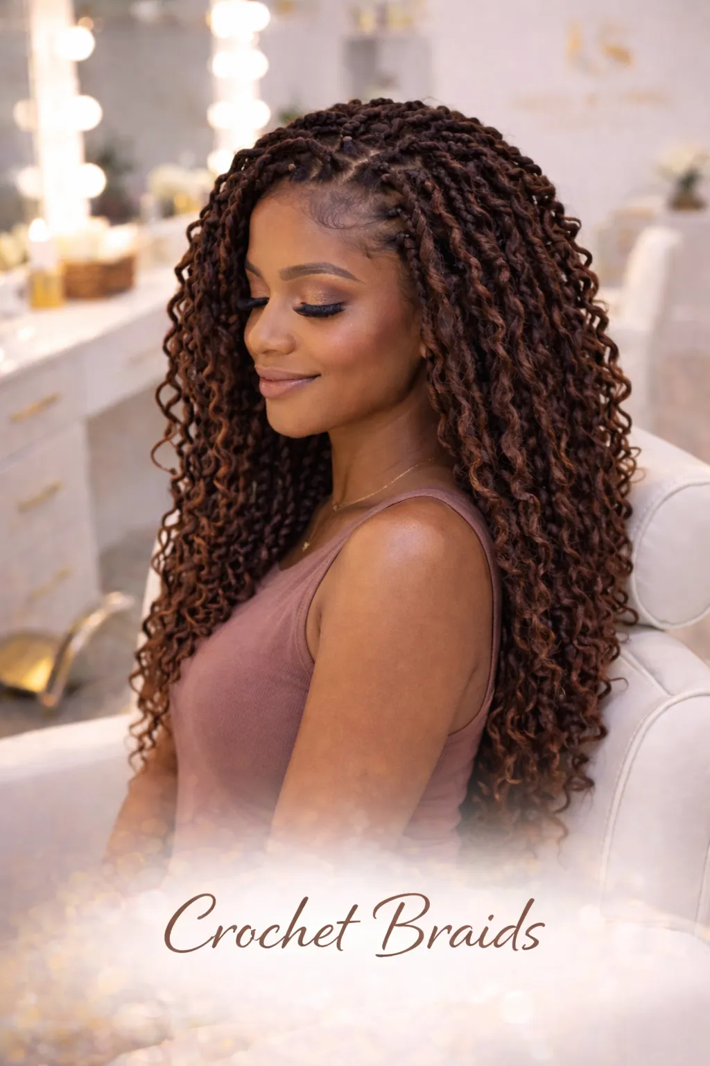 From knotless braids and cornrows to faux locs and twists, we bring beauty, convenience, and care right to you.